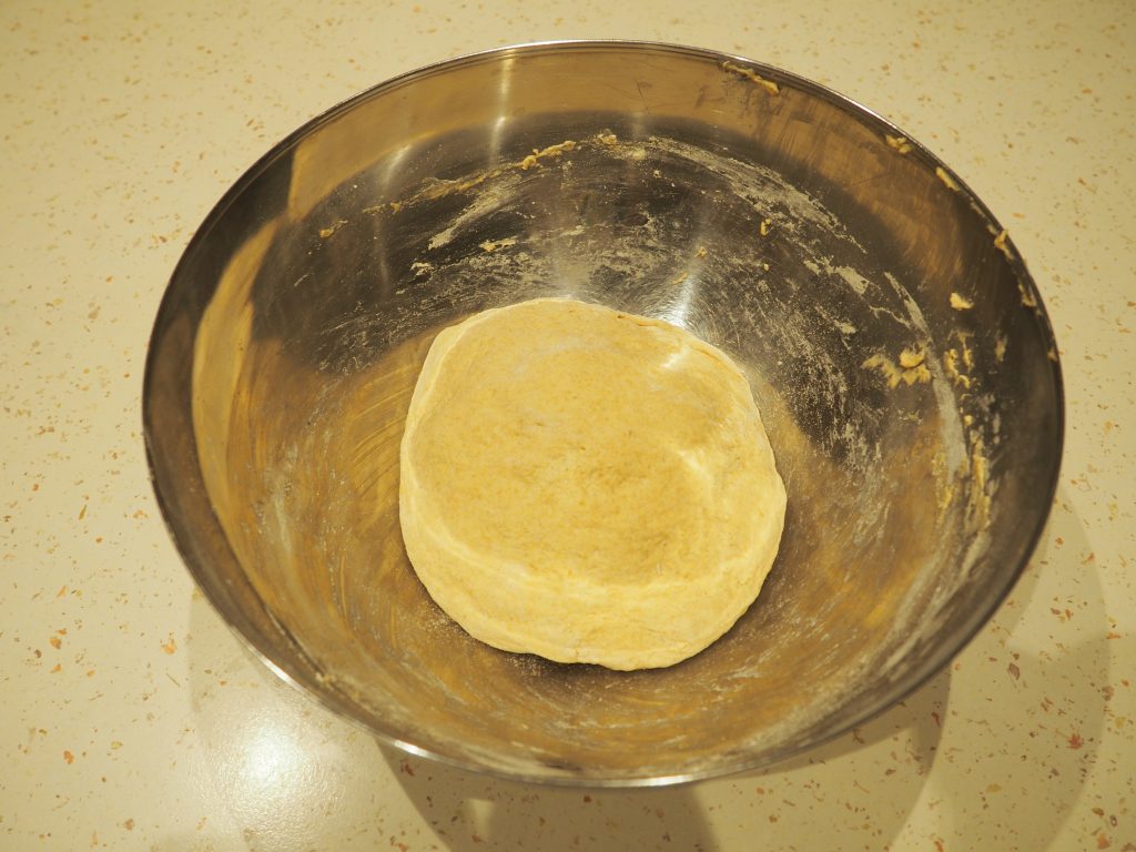 5. Laisse reposer la pâte (autolyse) : Couvre le saladier avec un torchon propre et laisse reposer la pâte pendant 15 minutes à température ambiante. Ce temps de repos permet à la farine de bien s’hydrater.